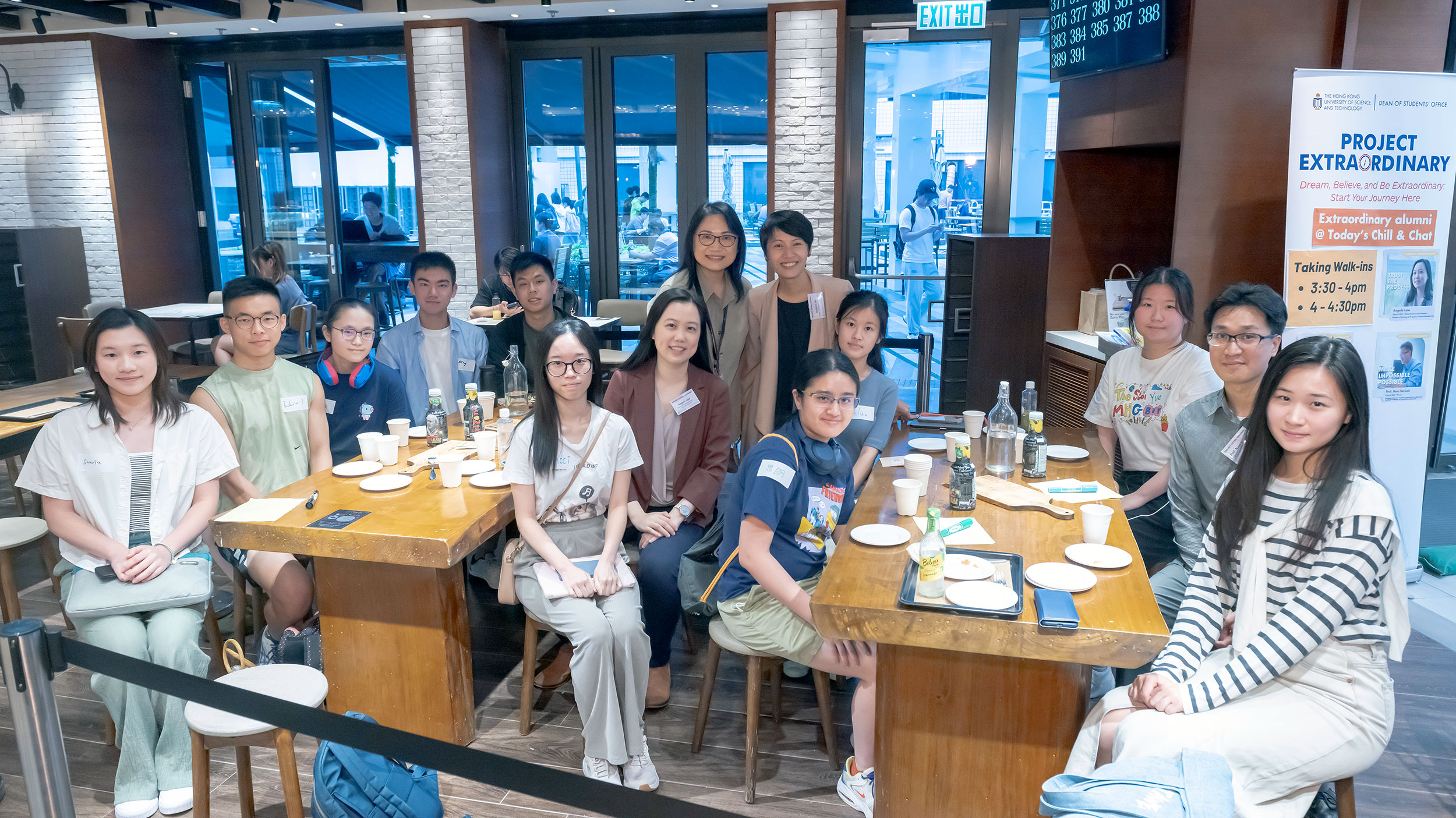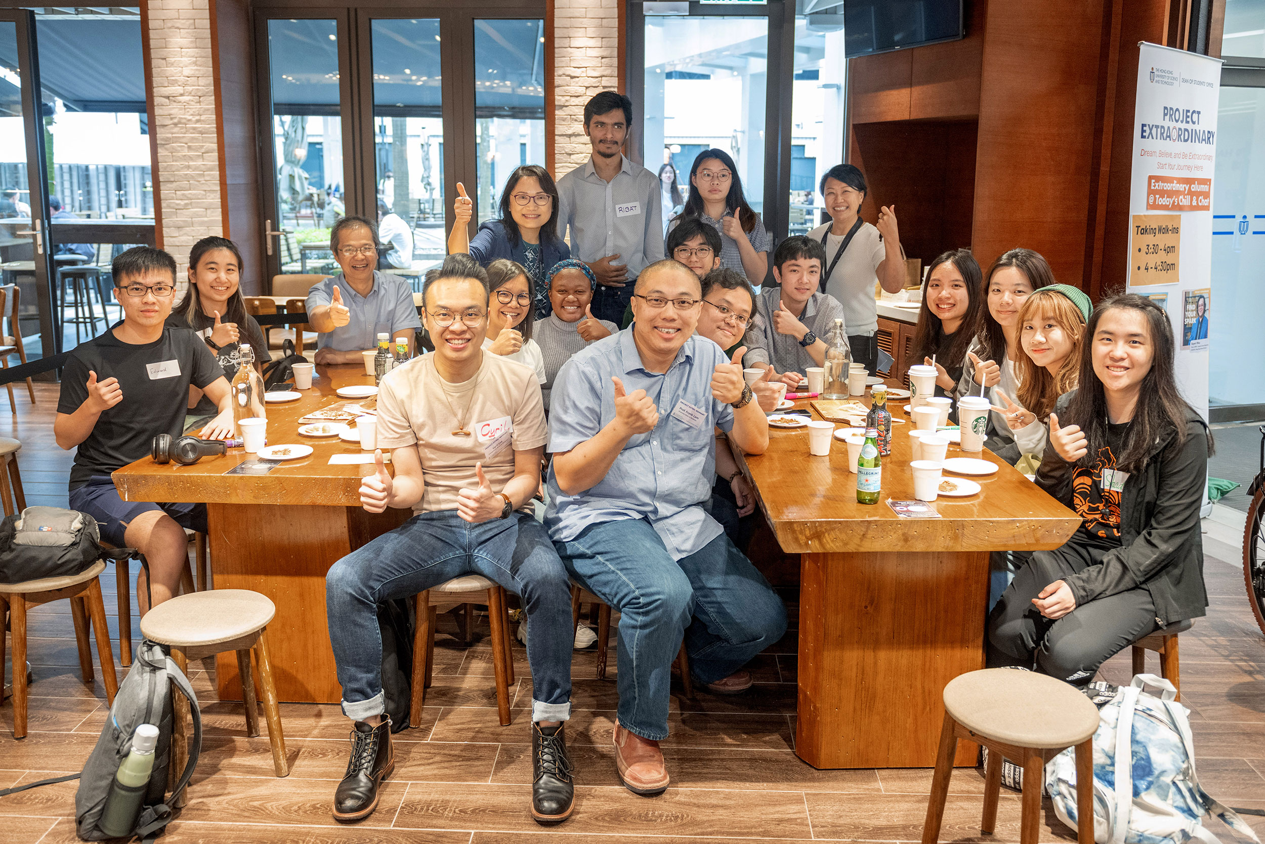 Alumni featured in the Project Extraordinary video series were invited back to HKUST to share their experiences and insights with students in five casual Chill and Chat mingling sessions held at Passion on campus.