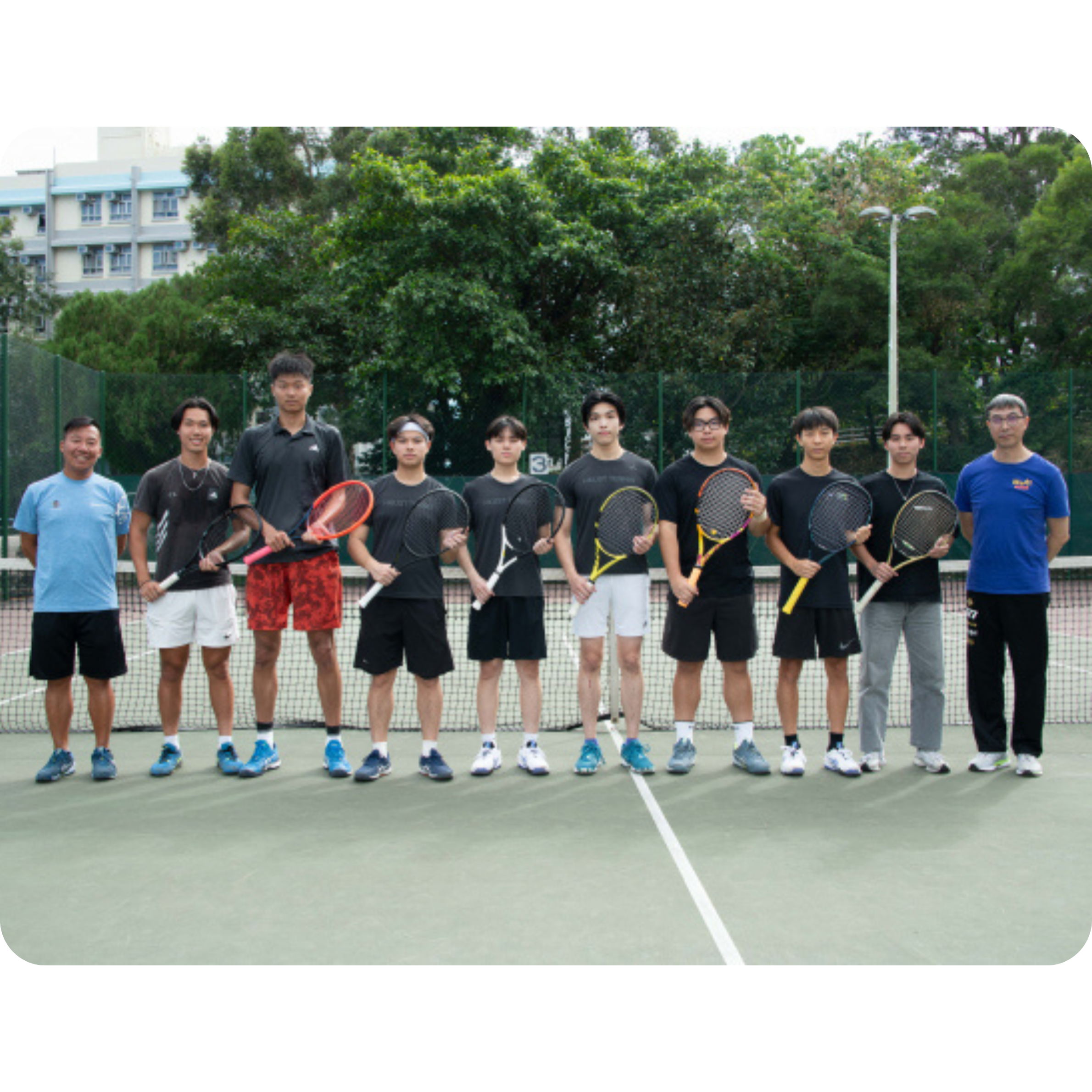 Mr TONG Wing Chung Eddy (Coach), Cyrus LIU, LIAO Zhaoquan Leo, TAN Pok Wai, HUANG I-wei, LEE Gui Kuang, CHOW Chun Hei, CHU Wing Yin, LOU Chenxuan, Mr AU-YEUNG Chun Leung (Manager)
