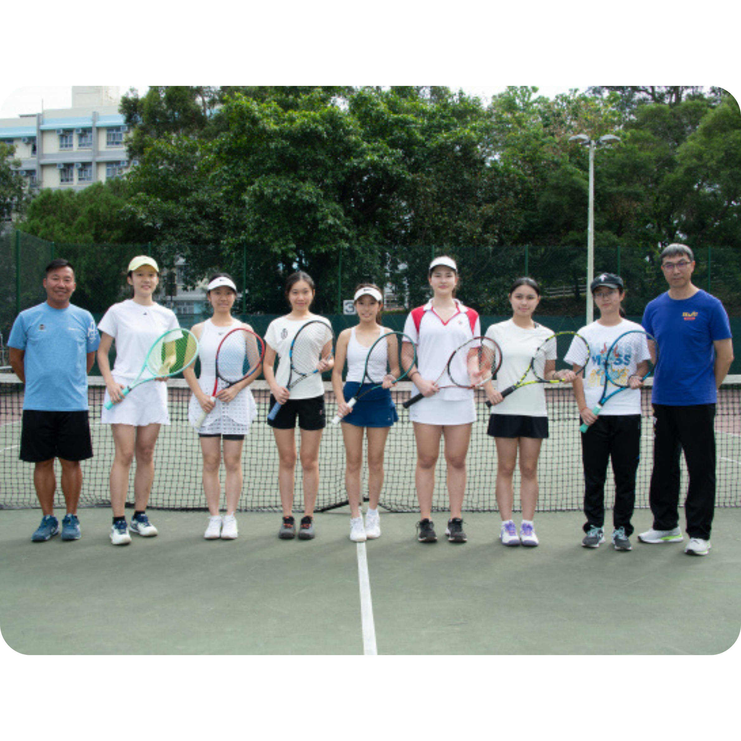 Mr TONG Wing Chung Eddy (Coach), WANG Yanfei, CHEN Xiaoyun, FUNG Kei, LEUNG Wing Man, TUGULEA Arina, REYES Aliya Caryl Coching, XU Dantong, Mr AU-YEUNG Chun Leung (Manager)